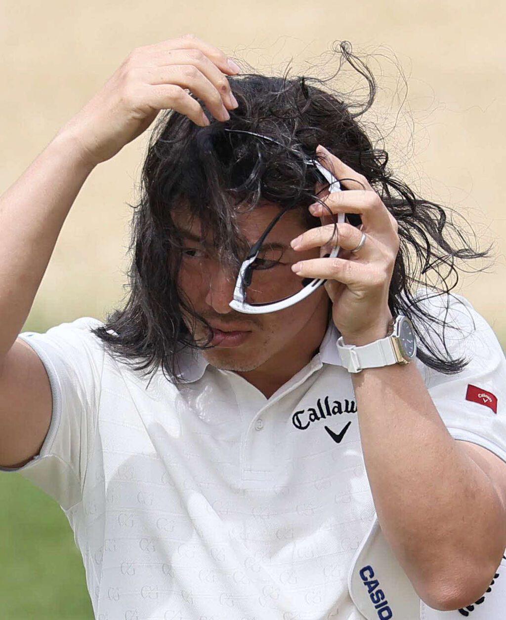 石川遼に珍事…サングラスにロン毛が絡まり四苦八苦20秒の“格闘劇”