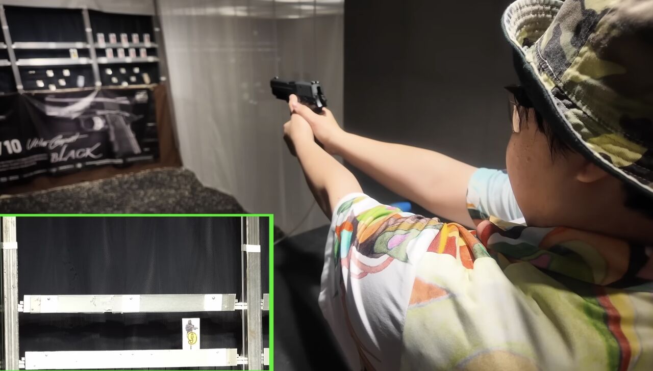 即応予備自衛官のやす子が「本当に射撃上手いの?」か、エアガンで検証。ハンドガン「P226 E2」や、使い慣れているという「89式小銃」で小さな的を狙った。