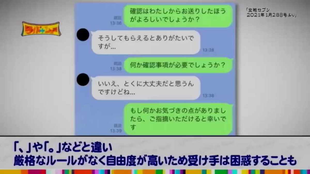 若い人の間で三点リーダー症候群が多いらしい?けど、私は若くないのに「…」使うぞ!絵文字をあまり使わないので感情表現って感じかな〜なので「!」もめっちゃ使う「…!」はだいたい悶えてる時#ワイドナショー